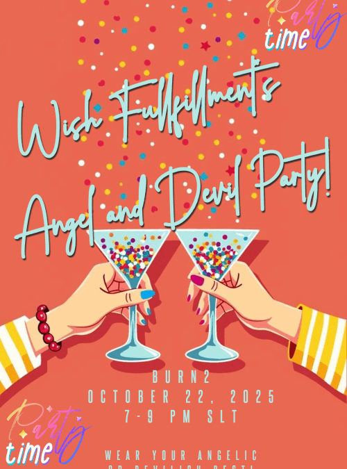 Join us at the Wish Fullfillment Camp for an Angel and Devil Party! October 22, 2025 7-9 PM SLT