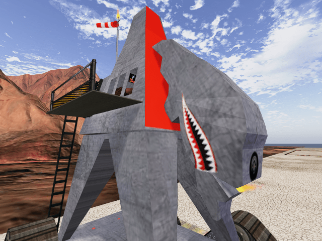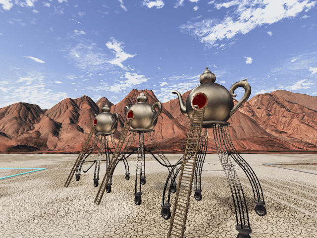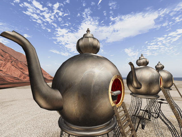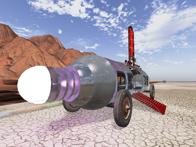 A collection of over 60 art cars are available for driving during the event. These have been donated by past and present builders. Art car rezzer kiosks are placed throughout the event. Attendees can view a slide show of art cars from the kiosk and click it to rez their own copy to drive. Vehicles from the rezzer are Temp-rezzed and disappear upon standing, but you can always rez another from a nearby kiosk.